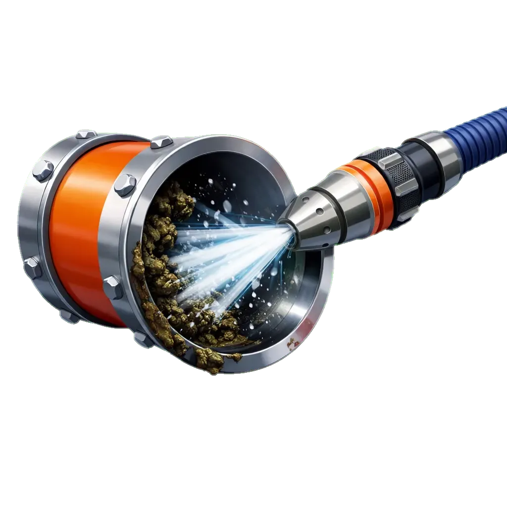 Limpeza profunda e remoção de resíduos em tubulações e equipamentos industriais.